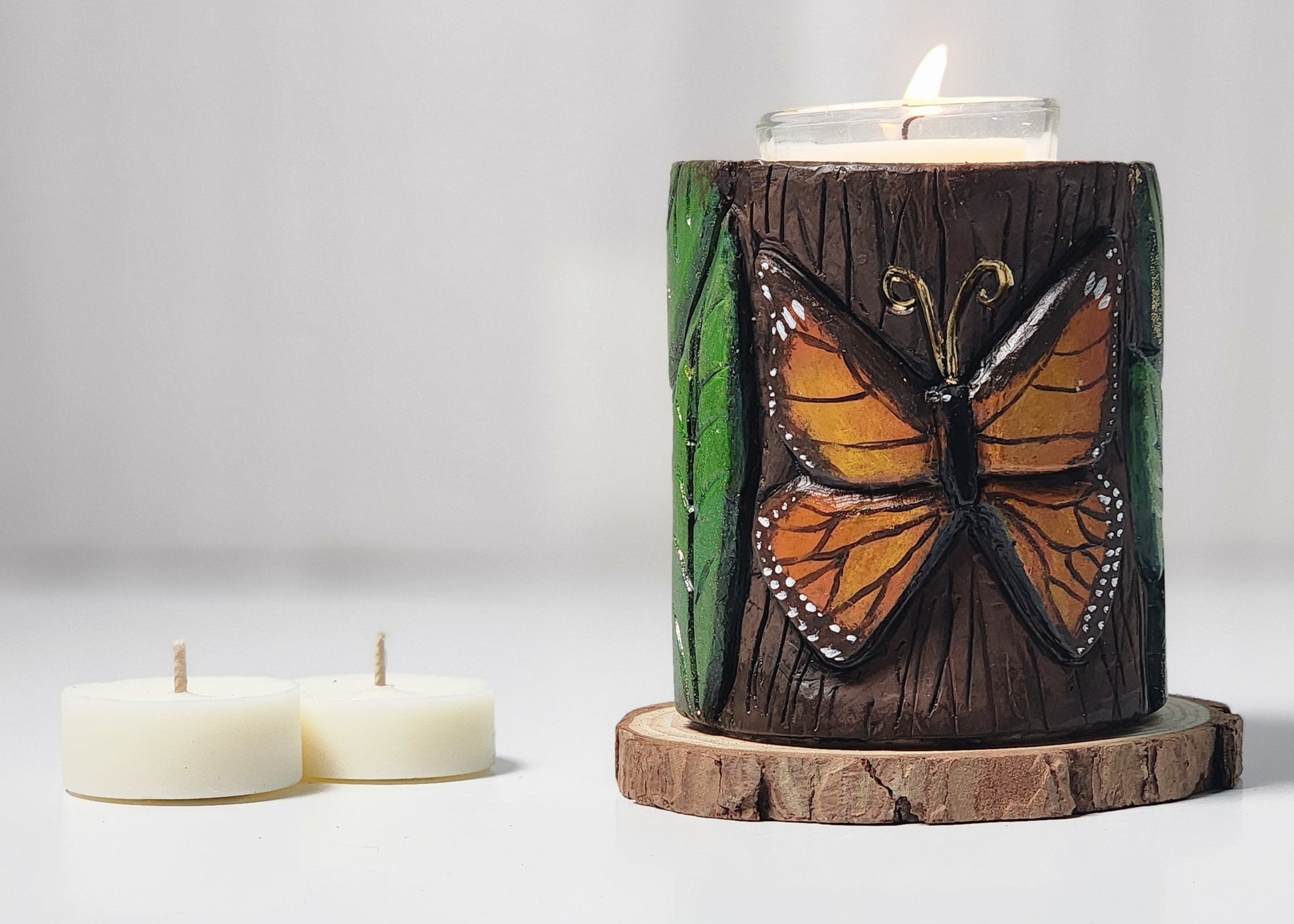 Wax Butterfly candle Holder - Tallado en Vela - Artesania Puerto Rico